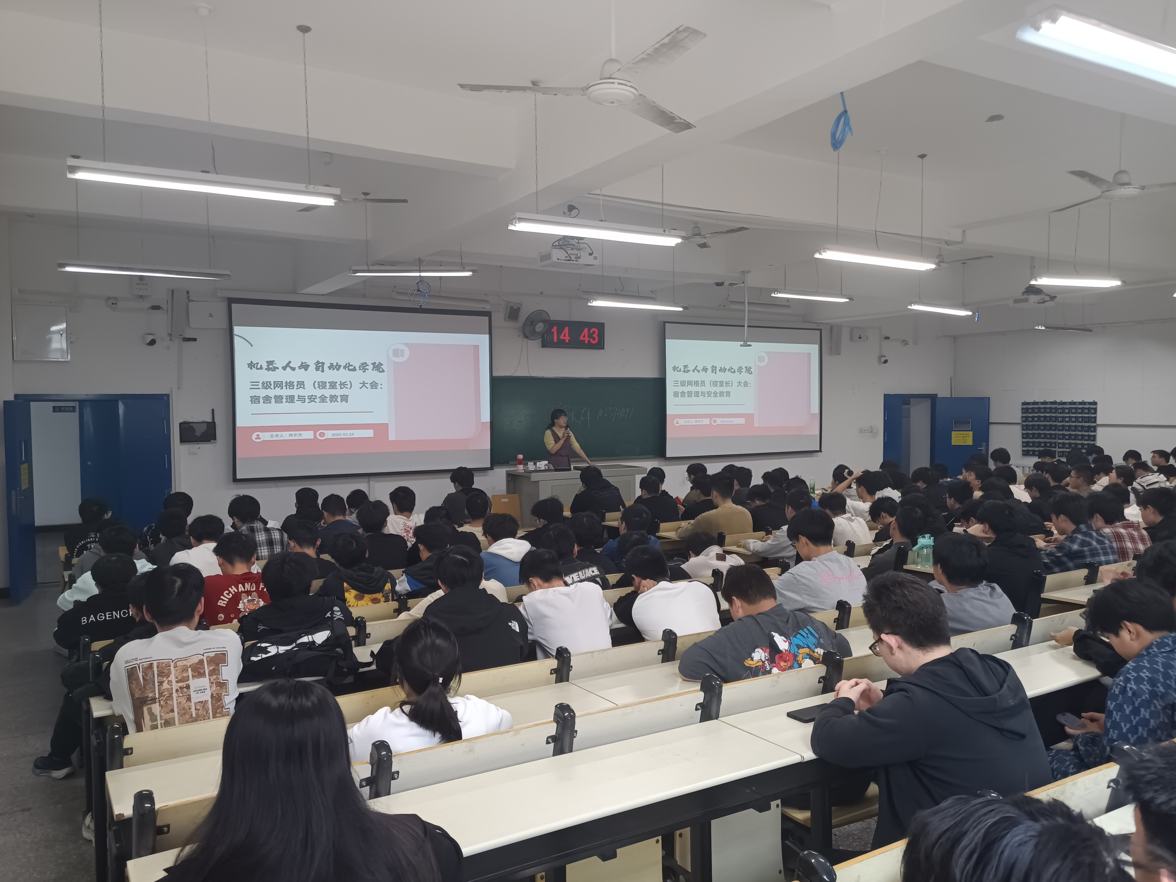 本网讯(文 朱晓妍/图 陈欢欢)为深化学生宿舍网格化管理,提升宿舍安全管理水平,营造安全、文明、和谐的宿舍环境,3月24日,william威廉中文召开2025年三级网格员(寝室长)专题工作会议。学工办主任陈欢欢、宿舍管理中心负责人朱晓妍及全院近200名寝室长参加会议。